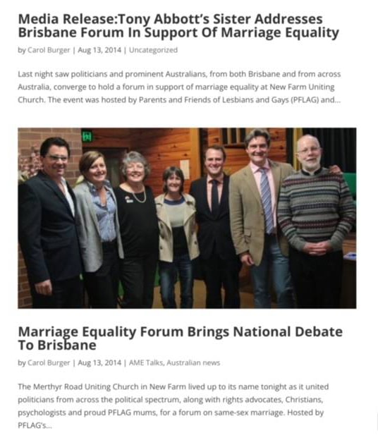 In 2014 Brisbane people were seeking information about marriage equality so a forum was held at the Uniting Church at New Farm.